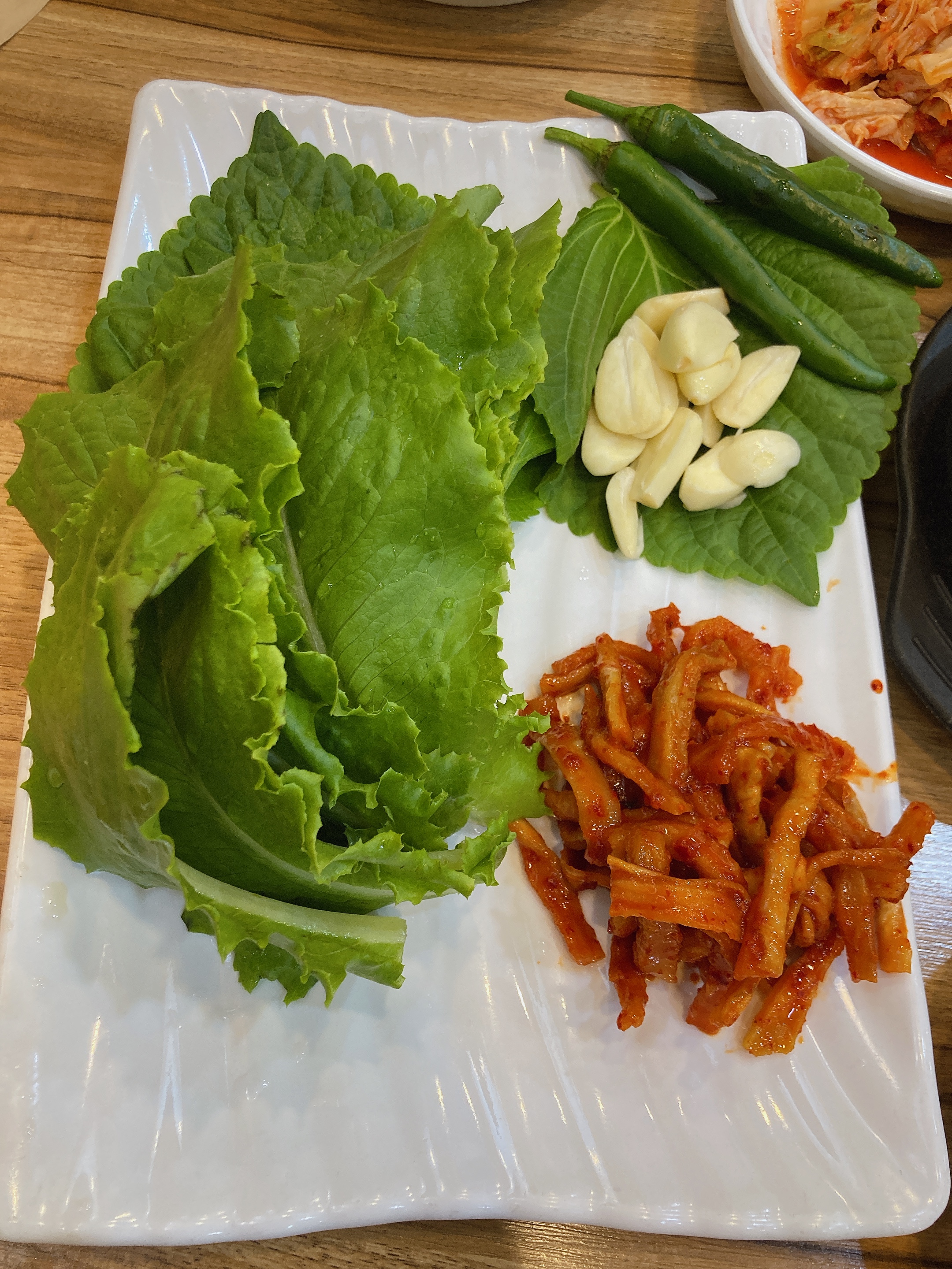 고기추가(보쌈), 명이나물 추가 비용이 있습니다.