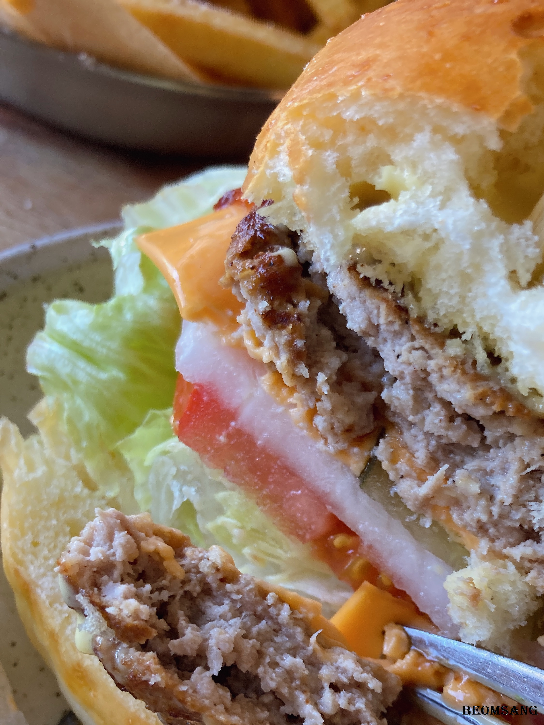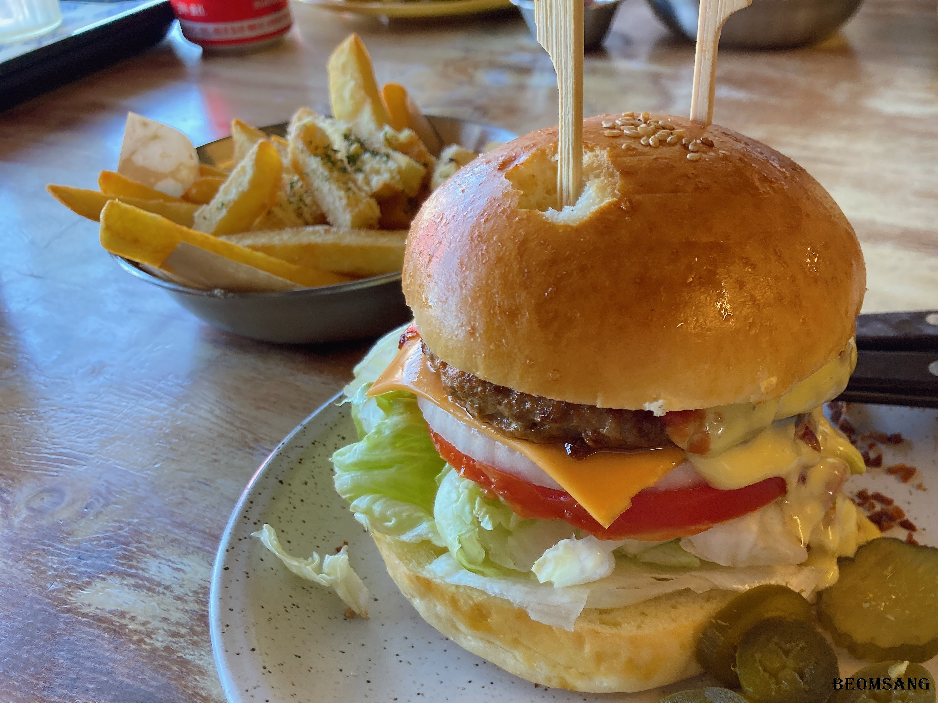 구좌마늘버거로 주문하였습니다. 함박 스테이크 느낌의 두꺼운 페티가 인상적인 버거입니다.