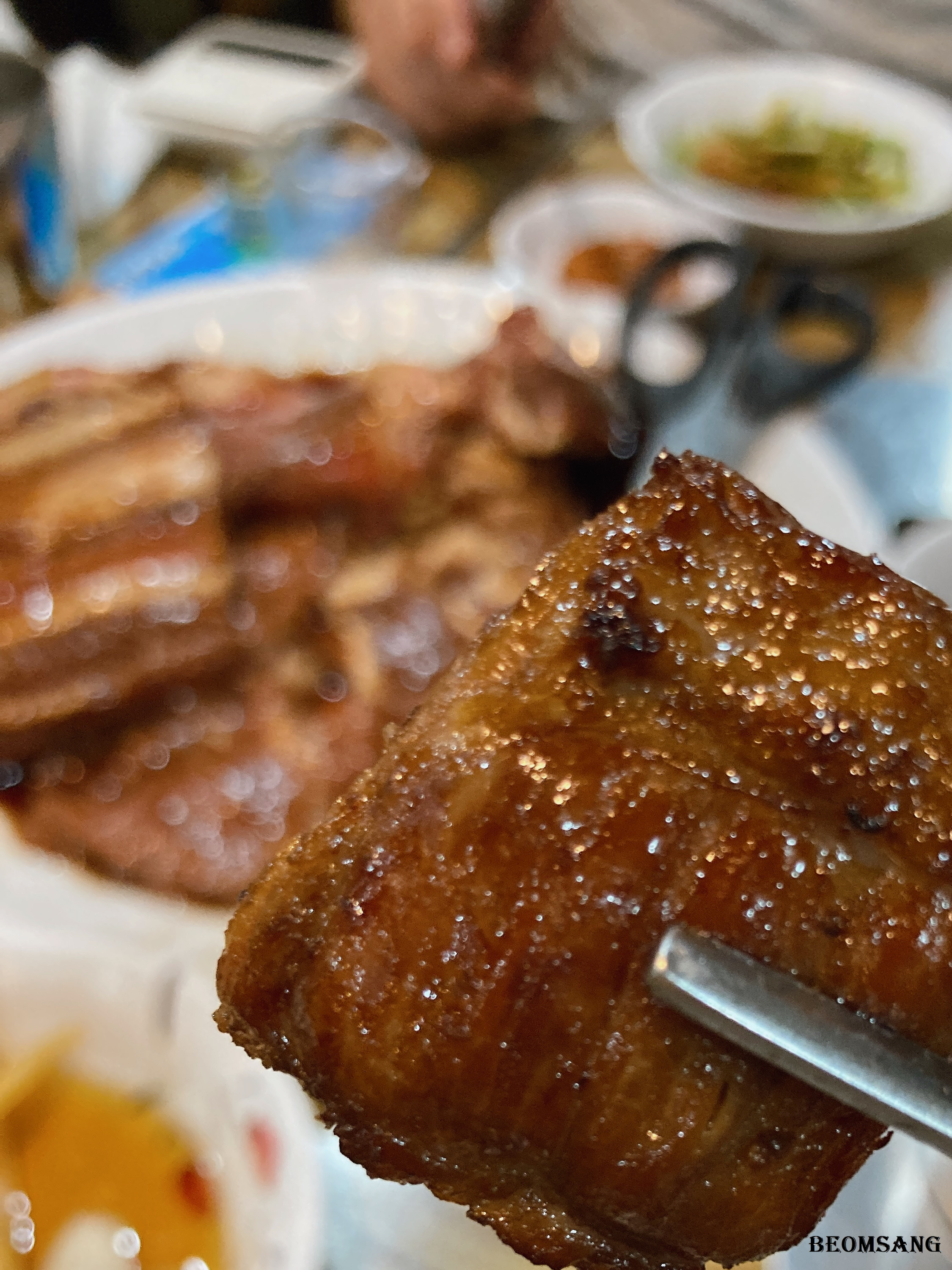 - 특제 멜젓(멸치젓) 소스와 고기의 조합이 매우 좋습니다.