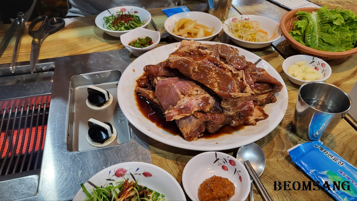 우도에서 제주도로 돌아왔습니다. "제주도에 왔는데 웬 서울을 찾느냐~"라는 말이 무색하게 손에 꼽히는 함덕 맛집입니다. 물론 양념흑돼지갈비가 시그니처 메뉴입니다.