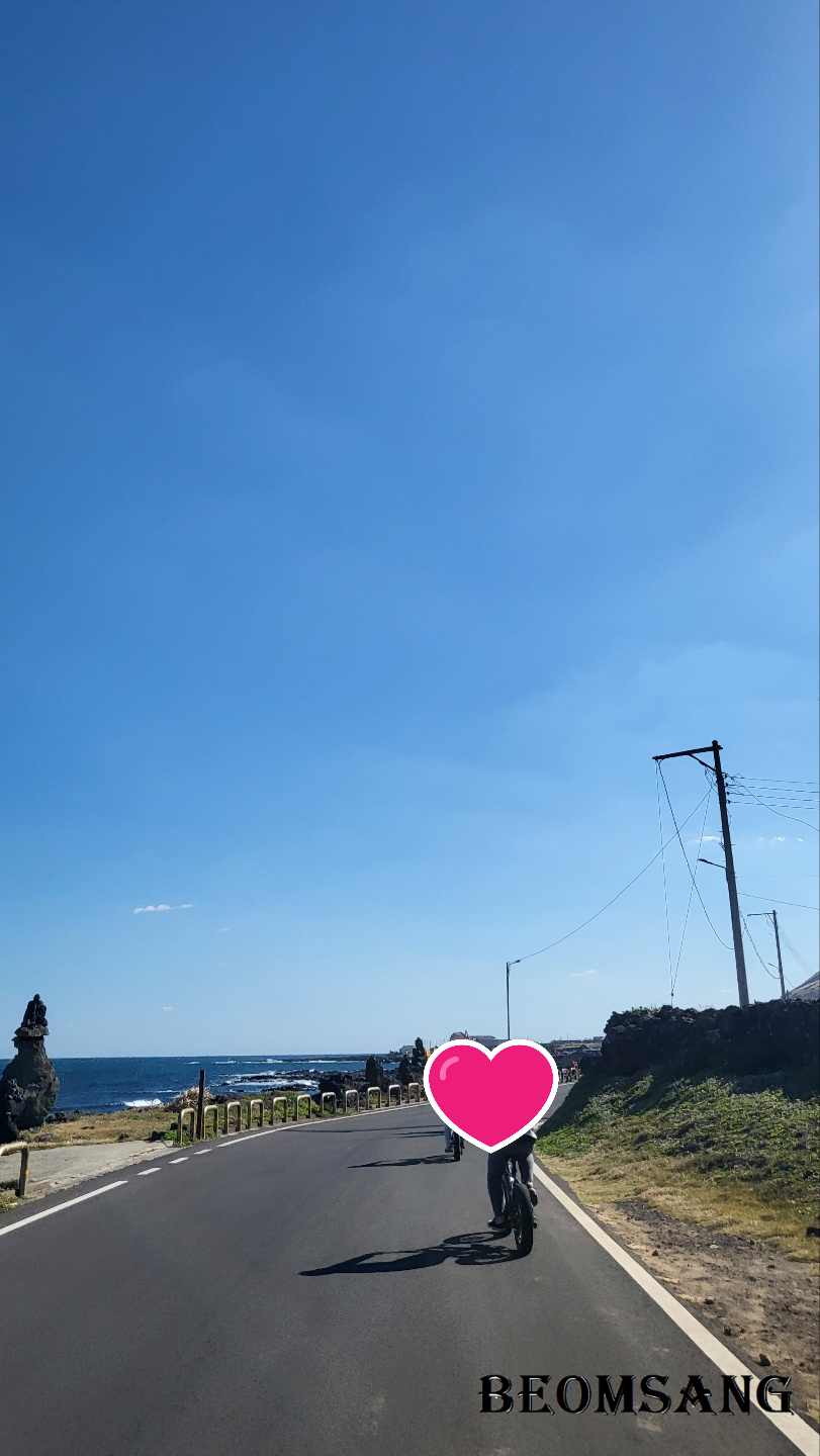 해안도로를 따라 자전거를 타며 보는 풍경과 바닷바람 느낌이 너무 좋아서 섬을 여러바퀴 돌았는데... 첫 번째 완주 때 1단계로 배터리 잔량이 80%가 남은데 반해, 두 번째 완주 때는 5단을 넣고 달렸다가 1/3 지점도 못 가서 배터리가 10%밖에 안 남는 해프닝도 있었답니다.