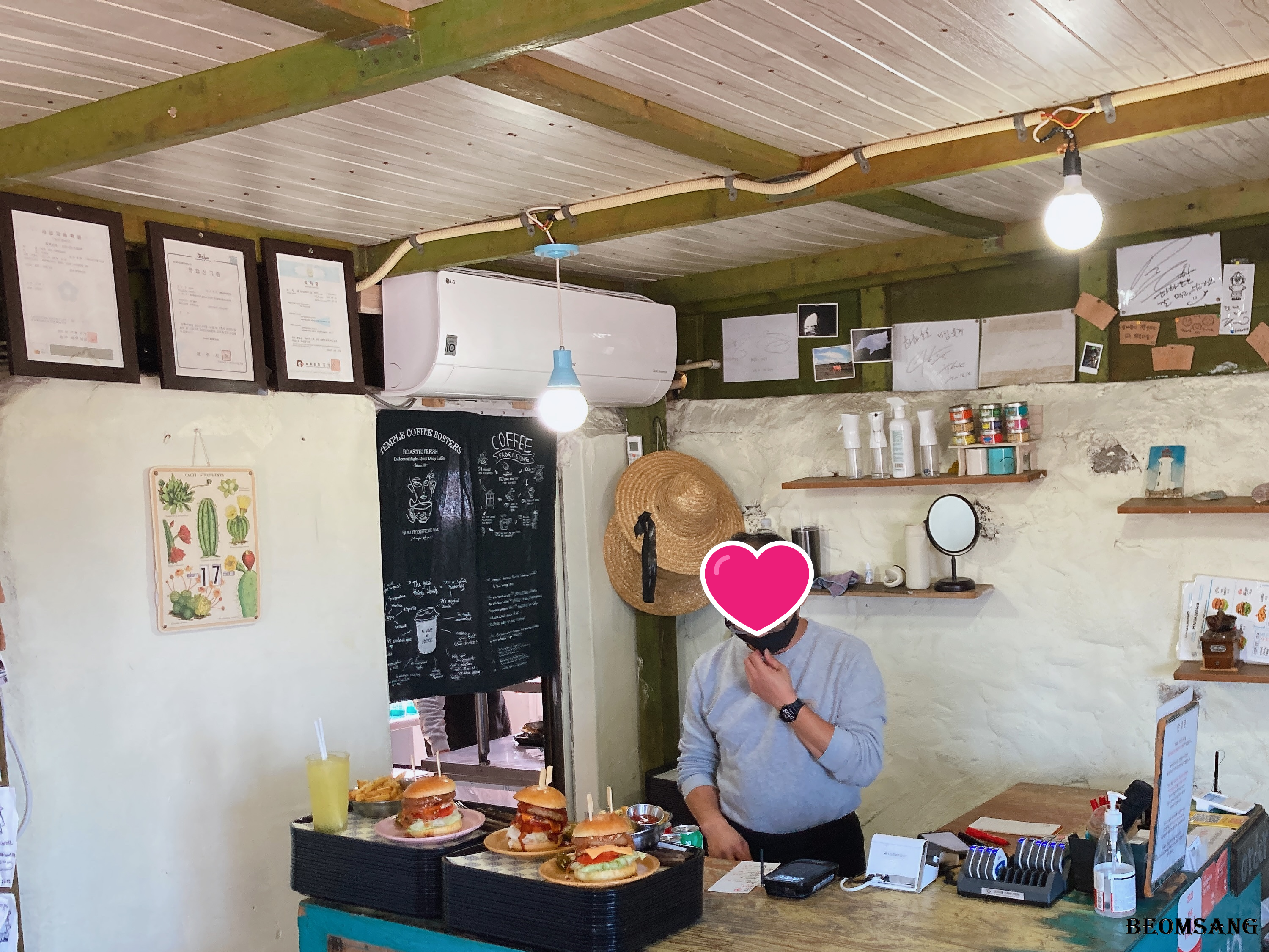 여기가 그렇게 맛있다면서요? 구좌 마늘, 우도 땅콩이라는 메뉴에서도 볼 수 있듯이 제주 우도의 특색을 잘 살린 버거 집이에요.